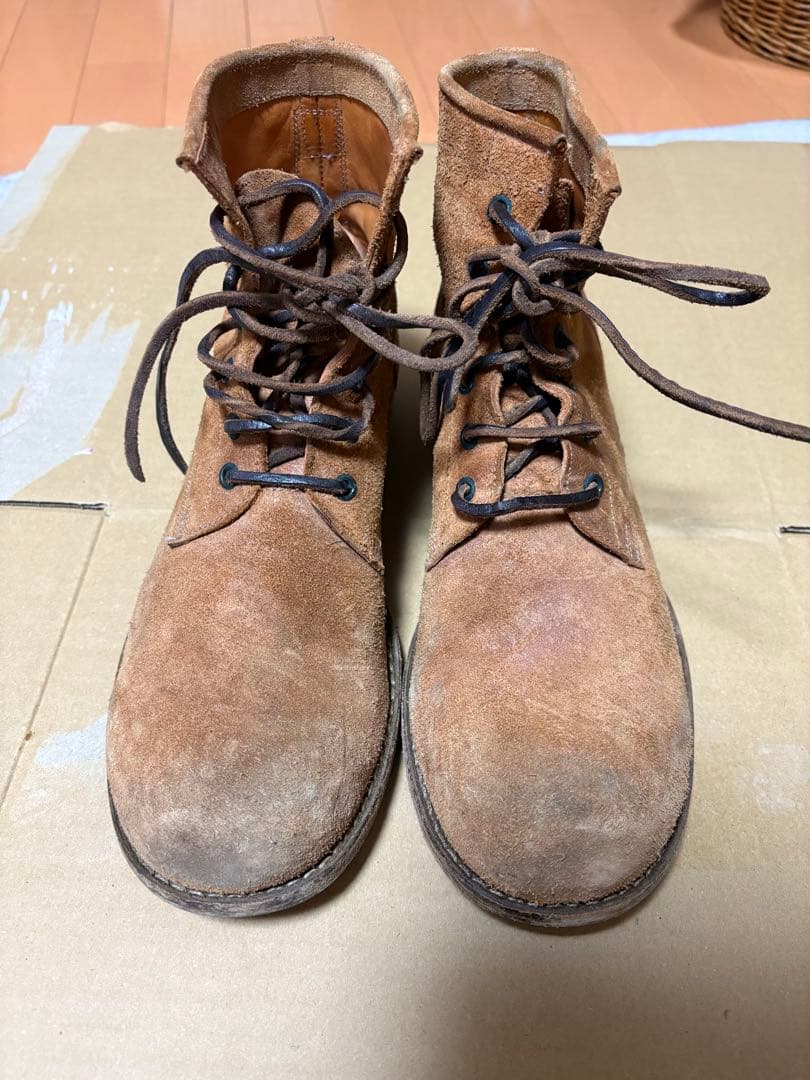Paraboot THIERS/SPORT VEL MARRON UK8パラブーツ ティエール スポーツ ダークブラウンスエードUK8(26.5cm)箱がないので色表記が正式なものと違うかも知れません。2024年製造品、トランクショーで購入。海外では展開されていますが、国内販売はないモデルです。5.6回の使用。軽度の擦れはありますがきれいな状態です。ソールの減りは軽度で問題ない状態かと思います。ティエールスポーツの違う品番8サイズの箱があるので、お付けする予定。